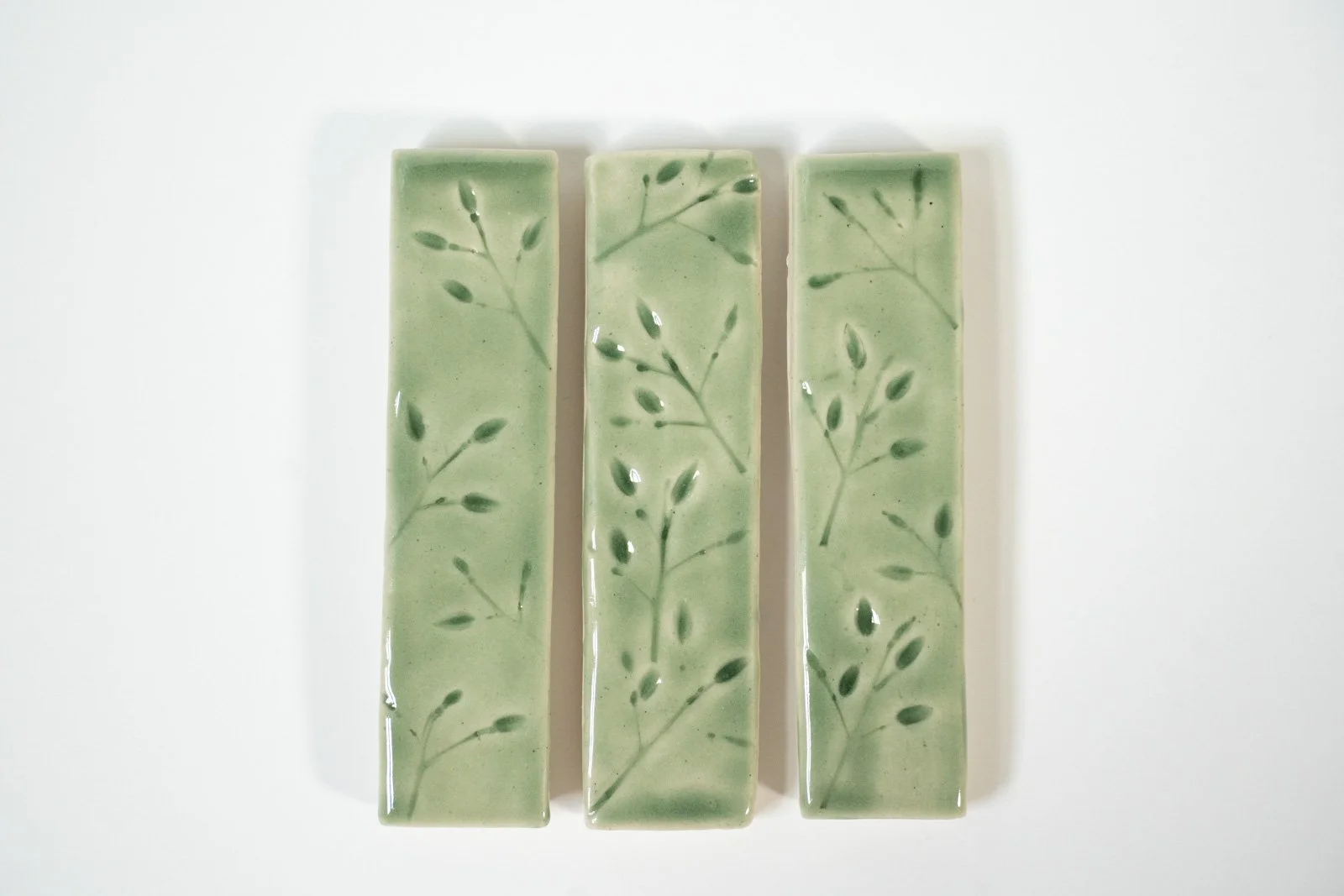 Most of our tiles are “Made to Order,” with fulfillment taking approximately six weeks—sometimes less, especially for smaller orders. If you’d like to purchase more than 10 square feet of tile (~900 tiles), please contact us for a customized timeline. To see what’s available now, see our “Limited Edition” tiles below.